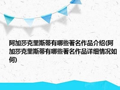 想必现在有很多小伙伴对于阿加莎克里斯蒂有哪些著名作品方面的知识都比较想要了解,那么今天小好小编就为大家收集了一些关于阿加莎克里斯