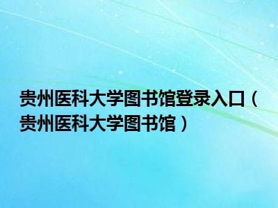 1、贵州医科大学图书馆隶属于贵州医科大学。