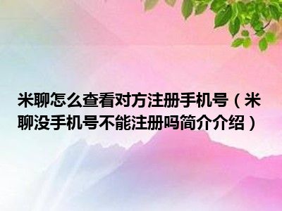 导读对于米聊没手机号不能注册吗这个问题感兴趣的朋友应该很多,这个也是目前大家比较关注的问题,那么下面小好小编就收集了一些米聊没手机号不...