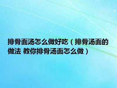 - 排骨面汤怎么做好吃(排骨汤面的做法 教你排骨汤面怎么做)