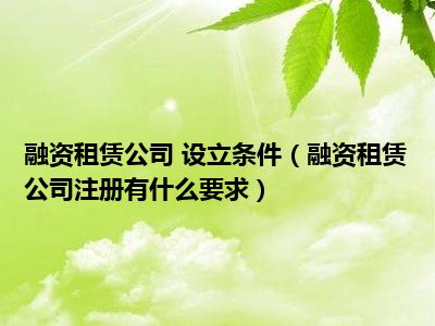目前大家应该是对融资租赁公司注册有什么要求比较感兴趣的,所以今天CC就来为大家整理了一些关于融资租赁公司注册有什么要求方面的相关知识来分享给大家,希望大家会喜欢哦。