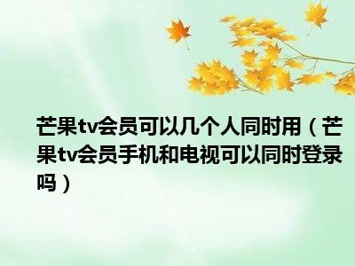 导读1、芒果tv会员手机和电视可以同时登录吗2、芒果会员的手机和电视可以同时登录。3、芒果TV,原名湖南卫视金鹰网,是湖南广电旗下唯一的互联...