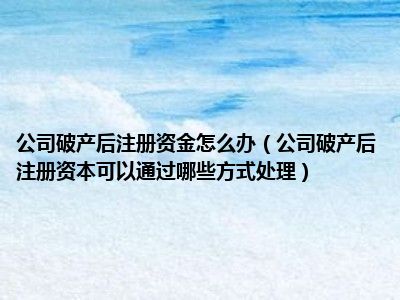 目前大家应该是对公司破产后注册资本可以通过哪些方式处理比较感兴趣的,所以今天CC就来为大家整理了一些关于公司破产后注册资本可以通过哪些方式处理方面的相关知识来分享给大家,希望大家会喜欢哦。