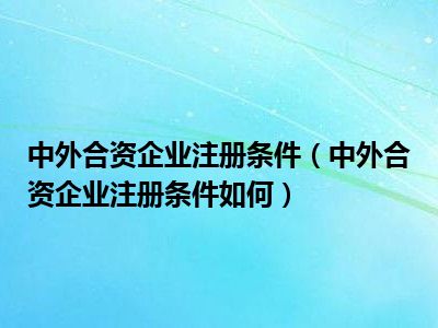 目前大家应该是对中外合资企业注册条件如何比较感兴趣的,所以今天CC就来为大家整理了一些关于中外合资企业注册条件如何方面的相关知识来分享给大家,希望大家会喜欢哦。