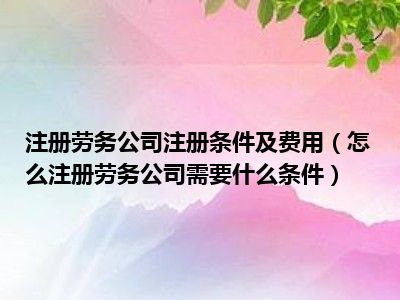目前大家应该是对怎么注册劳务公司需要什么条件比较感兴趣的,所以今天CC就来为大家整理了一些关于怎么注册劳务公司需要什么条件方面的相关知识来分享给大家,希望大家会喜欢哦。
