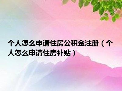 目前大家应该是对个人怎么申请住房补贴比较感兴趣的,所以今天CC就来为大家整理了一些关于个人怎么申请住房补贴方面的相关知识来分享给大家,希望大家会喜欢哦。