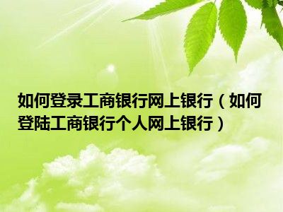 导读相信目前很多小伙伴对于如何登陆工商银行个人网上银行都比较感兴趣,那么小搜今天在网上也是收集了一些与如何登陆工商银行个人网上银行相关...