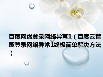 导读相信目前很多小伙伴对于百度云管家登录网络异常1终极简单解决方法都比较感兴趣,那么小搜今天在网上也是收集了一些与百度云管家登录网络异...