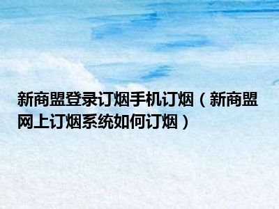 今天小风给大家收集了一些新商盟登录订烟手机订烟,新商盟网上订烟系统如何订烟方面的信息来分享给大家,如果大家感兴趣的话就接着看下面得文章吧