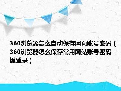 今天小风给大家收集了一些360浏览器怎么自动保存网页账号密码,360浏览器怎么保存常用网站账号密码一键登录方面的信息来分享给大家,如果大家感兴趣的话就接着看下面得文章吧
