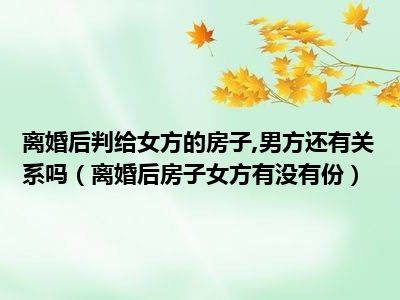 目前大家应该是对离婚后房子女方有没有份比较感兴趣的,所以今天CC就来为大家整理了一些关于离婚后房子女方有没有份方面的相关知识来分享给大家,希望大家会喜欢哦。