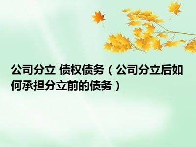 目前大家应该是对公司分立后如何承担分立前的债务比较感兴趣的,所以今天CC就来为大家整理了一些关于公司分立后如何承担分立前的债务方面的相关知识来分享给大家,希望大家会喜欢哦。