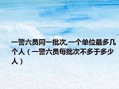 目前大家应该是对一警六员每批次不多于多少人比较感兴趣的,所以今天CC就来为大家整理了一些关于一警六员每批次不多于多少人方面的相关知识来分享给大家,希望大家会喜欢哦。