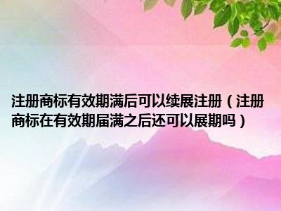 目前大家应该是对注册商标在有效期届满之后还可以展期吗比较感兴趣的,所以今天CC就来为大家整理了一些关于注册商标在有效期届满之后还可以展期吗方面的相关知识来分享给大家,希望大家会喜欢哦。