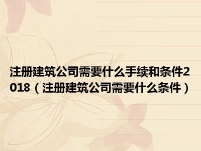 目前大家应该是对注册建筑公司需要什么条件比较感兴趣的,所以今天CC就来为大家整理了一些关于注册建筑公司需要什么条件方面的相关知识来分享给大家,希望大家会喜欢哦。