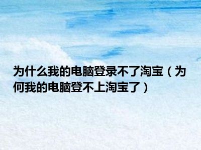 导读相信目前很多小伙伴对于为何我的电脑登不上淘宝了都比较感兴趣,那么小编今天在网上也是收集了一些与为何我的电脑登不上淘宝了相关的信息...
