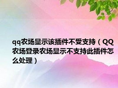 相信目前很多小伙伴对于QQ农场登录农场显示不支持此插件怎么处理都比较感兴趣,那么小编今天在网上也是收集了一些与QQ农场登录农场显示不支持此插件怎么处理相关的信息来分享给大家,希望能够帮助到大家哦。
