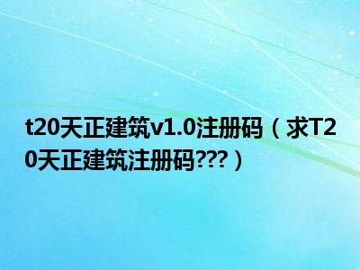 相信目前很多小伙伴对于求T20天正建筑注册码???都比较感兴趣,那么小编今天在网上也是收集了一些与求T20天正建筑注册码???相关的信息来分享给大家,希望能够帮助到大家哦。