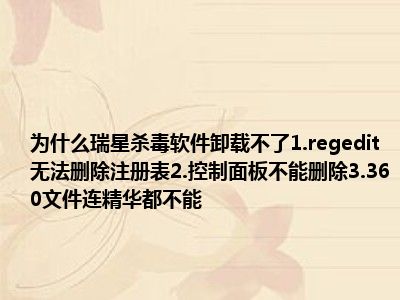 导读 相信目前很多小伙伴对于瑞星杀毒软件怎么卸载不了啊 1.regedit删不了那个注册表 2 . 控制面板里头也删不掉 3.360文件粉粹也不行都比...