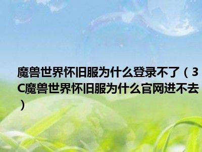 想必现在有很多小伙伴对于3C魔兽世界怀旧服为什么官网进不去方面的知识都比较想要了解,那么今天小好小编就为大家收集了一些关于3C魔兽世界怀旧服为什么官网进不去方面的知识分享给大家,希望大家会喜欢哦。