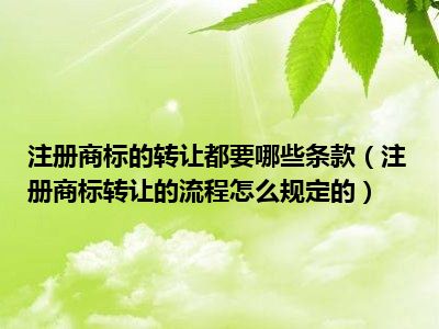 《商标法》第四十二条,转让注册商标的,转让人和受让人应当签订转让协议,并共同向商标局提出申请。受让人应当保证使用该注册商标的商品质量。 转让注册商标的,商标注册人对其在同一种商品上注册的近似的商标,或者在类似商品上注册的相同或者近似的商标,应当一并转让。 对容易导致混淆或者有其他不良影响的转让,商标局不予核准,书面通知申请人并说明理由。 转让注册商标经核准后,予以公告。受让人自公告之日起享有商标专用权。