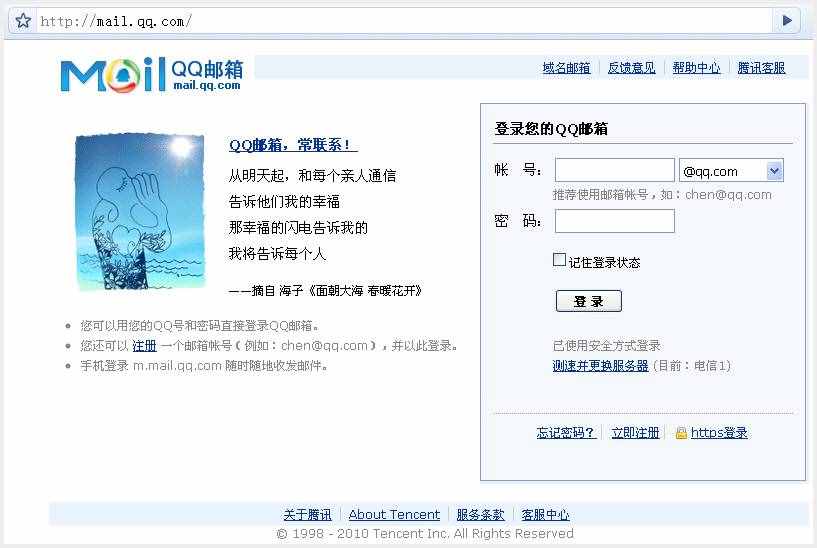二、还可以直接在浏览器地址栏输入mail.qq.com访问QQ邮箱首页,填写帐户名和密码后登入QQ邮箱。