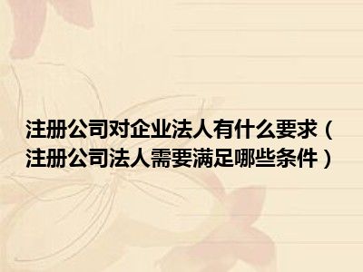 目前大家应该是对注册公司法人需要满足哪些条件比较感兴趣的,所以今天CC就来为大家整理了一些关于注册公司法人需要满足哪些条件方面的相关知识来分享给大家,希望大家会喜欢哦。