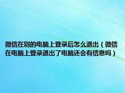 1、微信在电脑上登录退出了电脑还会有信息吗