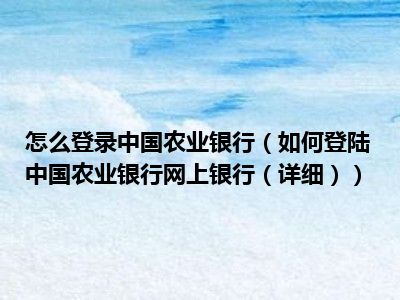 导读相信目前很多小伙伴对于如何登陆中国农业银行网上银行(详细)都比较感兴趣,那么小搜今天在网上也是收集了一些与如何登陆中国农业银行网上...