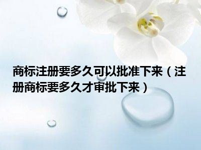注册商标最少要一年才审批下来。注册商标最多自收到商标注册申请文件之日起九个月内审核完毕。符合有关规定的,予以初步审定公告。对初步审定公告的商标,自公告之日起三个月内,没有异议的,发给商标注册证。经商标局核准注册的商标为注册商标,包括商品商标、服务商标和集体商标、证明商标。