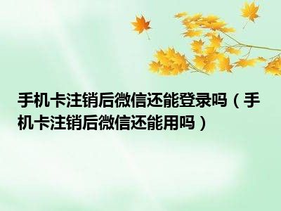 导读1、手机卡注销后微信还能用吗2、注销手机号,微信可以正常使用,用微信账号密码登录;但是会很不安全:如果别人用了自己的手机号,收到了验...