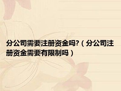 目前大家应该是对分公司注册资金需要有限制吗比较感兴趣的,所以今天CC就来为大家整理了一些关于分公司注册资金需要有限制吗方面的相关知识来分享给大家,希望大家会喜欢哦。