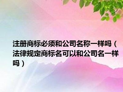 商标名可以和公司名一样,公司名称是在工商局注册的,那是商号,并不是商标。我国《商标法》和《公司法》对此并无禁止性规定。商标是识别某商品、服务或与其相关具体个人或企业的显著标志。一个公司只能有一个注册名称,但可以申请多个注册商标。