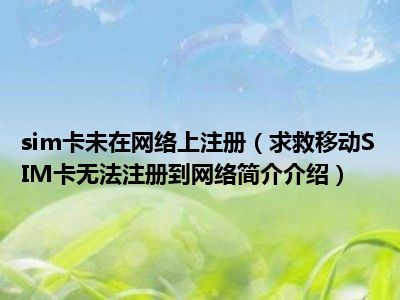 对于求救移动SIM卡无法注册到网络这个问题感兴趣的朋友应该很多,这个也是目前大家比较关注的问题,那么下面小好小编就收集了一些求救移动SIM卡无法注册到网络相关的知识回答,来分享给大家希望能够帮助到你哦。
