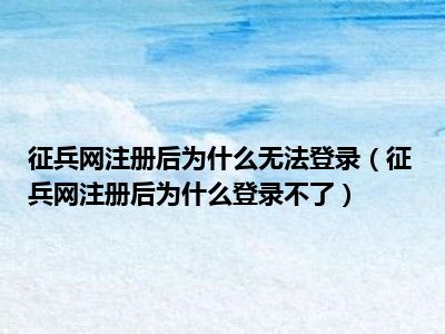 导读1、征兵网注册后为什么登录不了2、招聘注册后无法登录的原因可能是您的登录密码与您的账号不一致,网络慢,或者网站正在维护中。在这种情况...