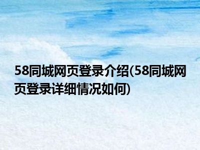 导读想必现在有很多小伙伴对于58同城网页登录方面的知识都比较想要了解,那么今天小好小编就为大家收集了一些关于58同城网页登录方面的知识分...