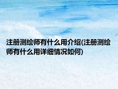 想必现在有很多小伙伴对于注册测绘师有什么用方面的知识都比较想要了解,那么今天小好小编就为大家收集了一些关于注册测绘师有什么用方面的知识分享给大家,希望大家会喜欢哦。