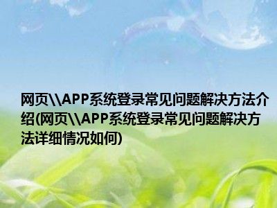 导读想必现在有很多小伙伴对于网页\/APP系统登录常见问题解决方法方面的知识都比较想要了解,那么今天小好小编就为大家收集了一些关于网页\/AP...