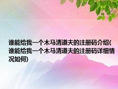 导读想必现在有很多小伙伴对于谁能给我一个木马清道夫的注册码方面的知识都比较想要了解,那么今天小好小编就为大家收集了一些关于谁能给我一...
