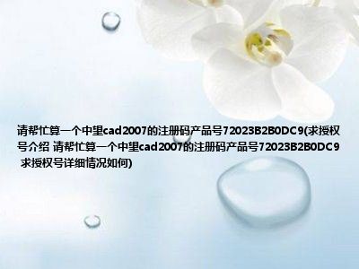 - 请帮忙算一个中望cad2007的注册码产品号72023B2B0DC9(求授权号介绍 请帮忙算一个中望cad2007的注册码产品号72023B2B0DC9 求授权号详细情况如何)