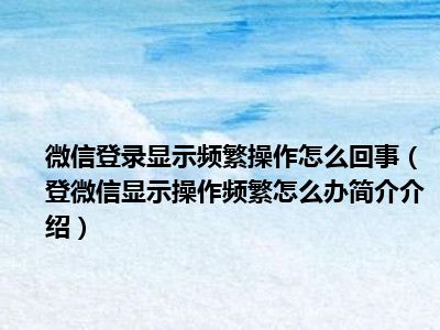 - 微信登录显示频繁操作怎么回事(登微信显示操作频繁怎么办简介介绍)
