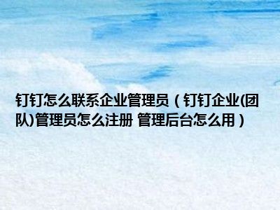 导读 今天小风给大家收集了一些钉钉怎么联系企业管理员,钉钉企业(团队)管理员怎么注册 管理后台怎么用方面的信息来分享给大家,如果大家感兴趣...