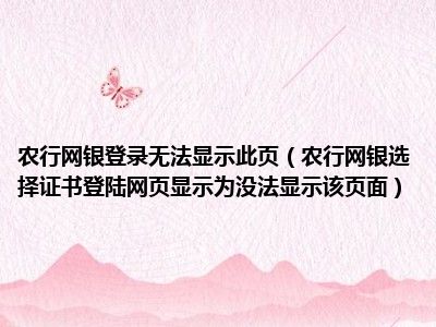相信目前很多小伙伴对于农行网银选择证书登陆网页显示为没法显示该页面都比较感兴趣,那么小编今天在网上也是收集了一些与农行网银选择证书登陆网页显示为没法显示该页面相关的信息来分享给大家,希望能够帮助到大家哦。