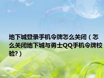 导读相信目前很多小伙伴对于怎么关闭地下城与勇士QQ手机令牌校验?都比较感兴趣,那么小编今天在网上也是收集了一些与怎么关闭地下城与勇士QQ手...