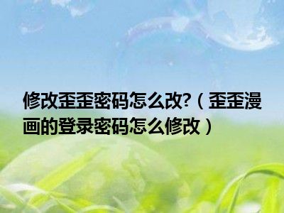 想必现在有很多小伙伴对于歪歪漫画的登录密码怎么修改方面的知识都比较想要了解,那么今天小好小编就为大家收集了一些关于歪歪漫画的登录密码怎么修改方面的知识分享给大家,希望大家会喜欢哦。