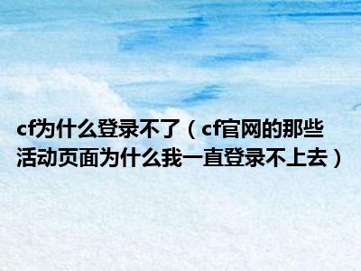 相信目前很多小伙伴对于cf官网的那些活动页面为什么我一直登录不上去都比较感兴趣,那么小编今天在网上也是收集了一些与cf官网的那些活动页面为什么我一直登录不上去相关的信息来分享给大家,希望能够帮助到大家哦。