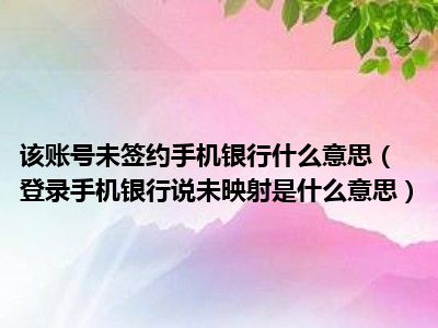 导读想必现在有很多小伙伴对于登录手机银行说未映射是什么意思方面的知识都比较想要了解,那么今天小好小编就为大家收集了一些关于登录手机银...