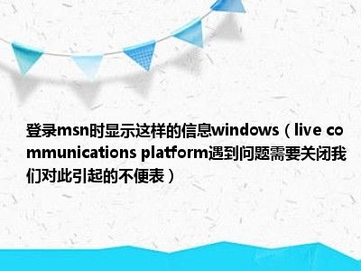想必现在有很多小伙伴对于登录msn时显示这样的信息:windows live communications platform遇到问题需要关闭。我们对此引起的不便表方面的知识都比较想要了解,那么今天小好小编就为大家收集了一些关于登录msn时显示这样的信息:windows live communications platform遇到问题需要关闭。我们对此引起的不便表方面的知识分享给大家,希望大家会喜欢哦。