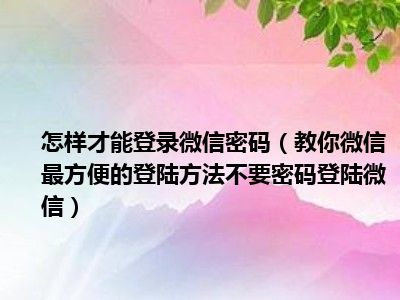 导读相信目前很多小伙伴对于教你微信最方便的登陆方法,不要密码登陆微信都比较感兴趣,那么小搜今天在网上也是收集了一些与教你微信最方便的登...
