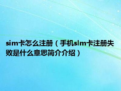 导读对于手机slm卡注册失败是什么意思这个问题感兴趣的朋友应该很多,这个也是目前大家比较关注的问题,那么下面小好小编就收集了一些手机slm卡...